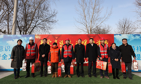 1月16日下午,怀柔区总工会在集团公司承建的一零一中学怀柔校区扩建项目部举行“关爱建设者,温暖科学城”暖心慰问活动。怀柔区委常委、组织部部长张闯,怀柔科学城党工委委员、管委会副主任伍建民,区人大副主任、区总工会主席张书远,区总工会党组书记、副主席曹岩一行,看望科学城一线建设人员和后勤保障工作人员并发送慰问品,为大家带来党和政府的深切关怀和诚挚祝福。