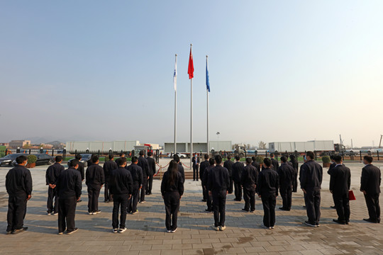 上午7时45分,在集团公司总经理王建红的带领下,全体人员整装列队,肃立以待。8时08分,一轮蓬勃的春日青阳当空闪耀,伴着雄浑的义勇军进行曲,鲜艳的五星红旗冉冉升起,迎风飘扬。